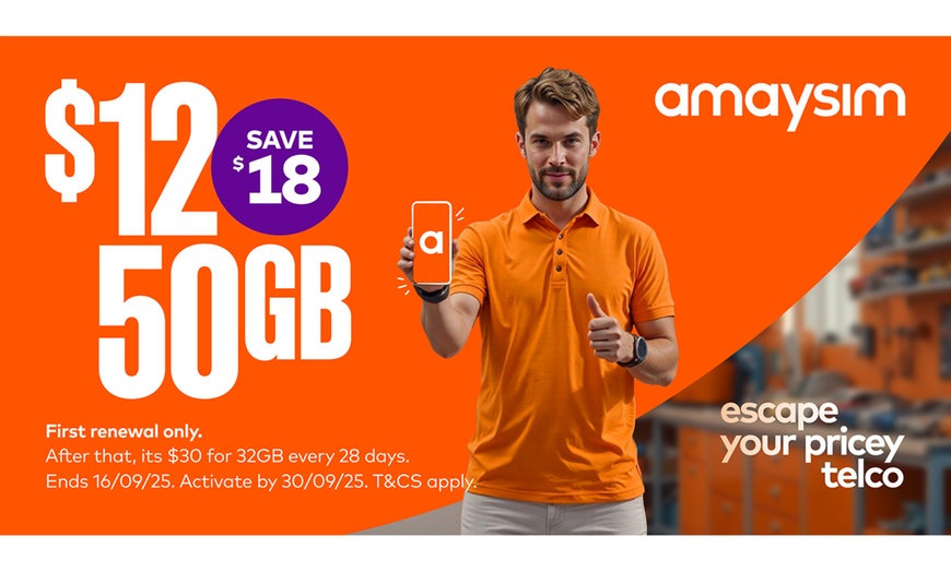 Get 50GB of data plus unlimited calls and texts every 28 days with Amaysim for only $12—simple, flexible, and affordable