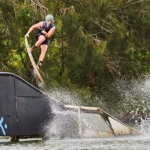 Bayside Wake Park is a premier destination for water sports adventure just south of Brisbane. It offers a world-class facility where thrill-seekers of all ages and abilities can experience the excitement of cable wakeboarding and kneeboarding. The park is designed to be welcoming for everyone, from complete beginners finding their balance for the first time to pro riders perfecting their aerial manoeuvres. For riders who want an added adrenaline rush, we have PRO wakeboards available to hire which can be used at the park on the obstacles.