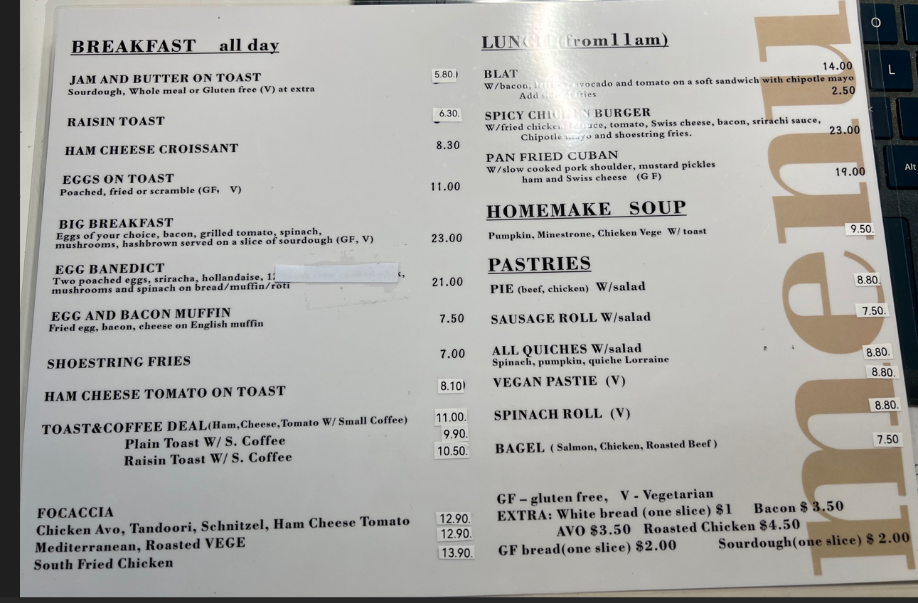 Food Menu - All Day Breakfast & Lunch