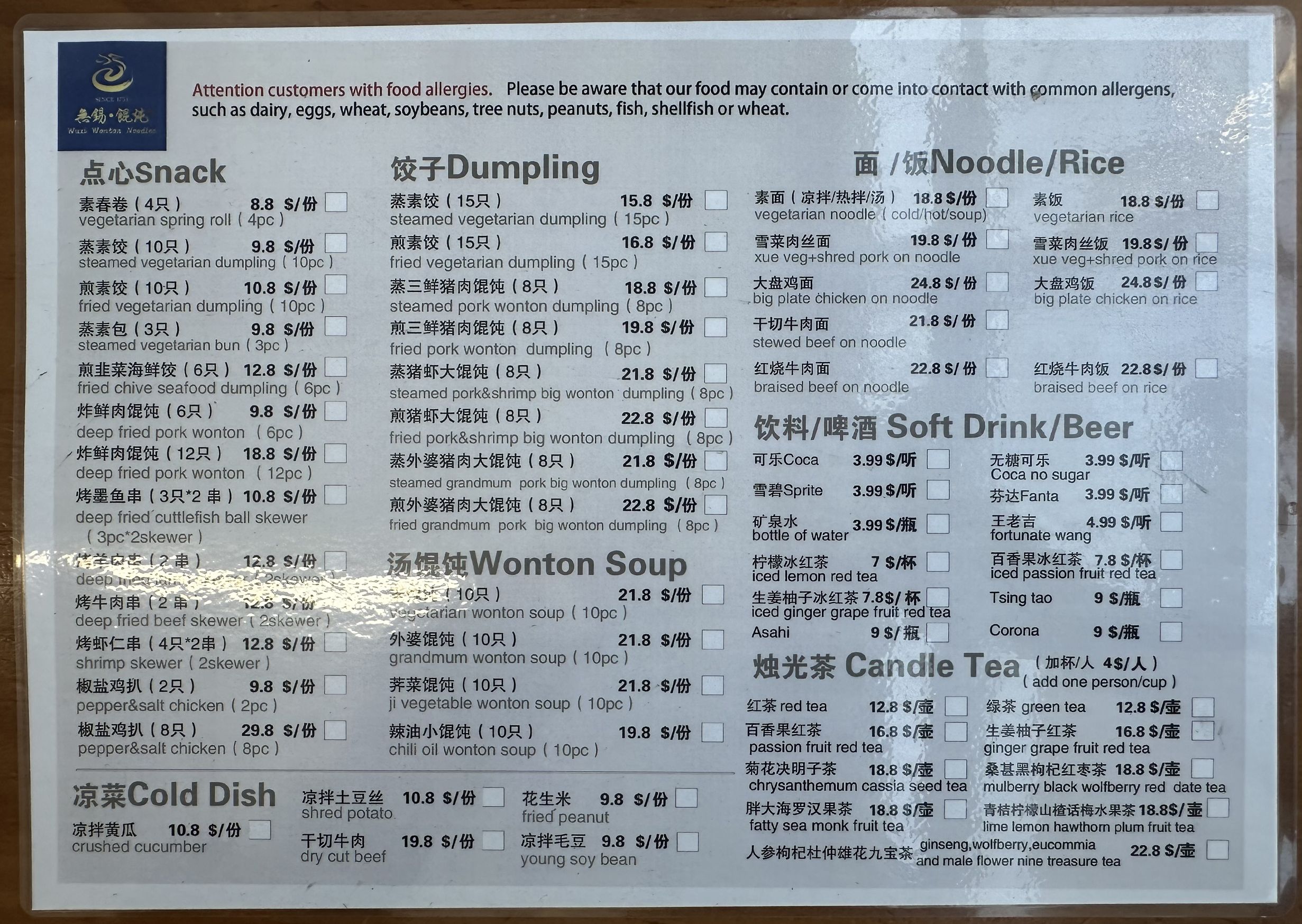 → Dumpling choices only from select menu.
