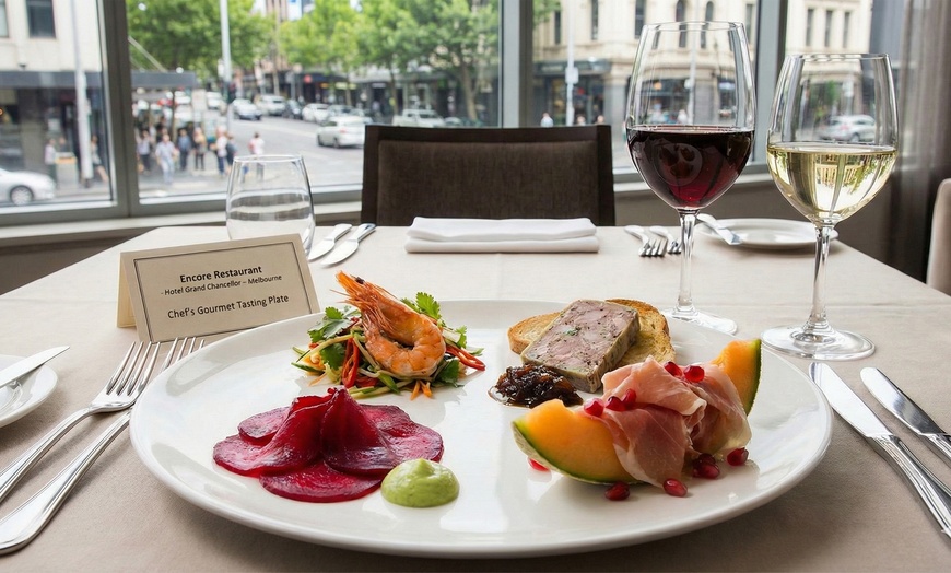 Looking for an unforgettable night out? Experience luxury at Encore Restaurant, Hotel Grand Chancellor. Enjoy a Chef’s Gourmet Tasting Plate for two, four, six, or eight people, paired with a full bottle of premium wine, including Moët & Chandon or Penfolds. Book your Melbourne dining deal today!