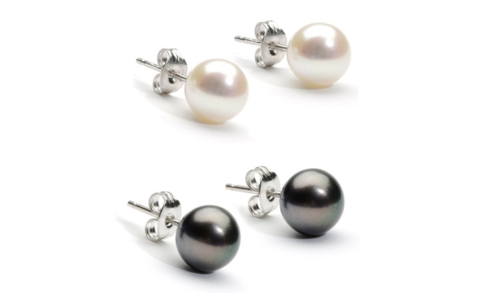 Pearl Earrings Set: Two Pairs - Cream and Black/Stud