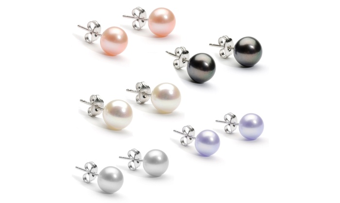Pearl Earrings Set with Crystals from Swarovski®: Two ($17), Three ($22) or Five ($27) Pairs