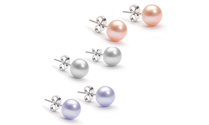 Pearl Earrings Set: Three Pairs - Peach, Lavender, Grey/Stud