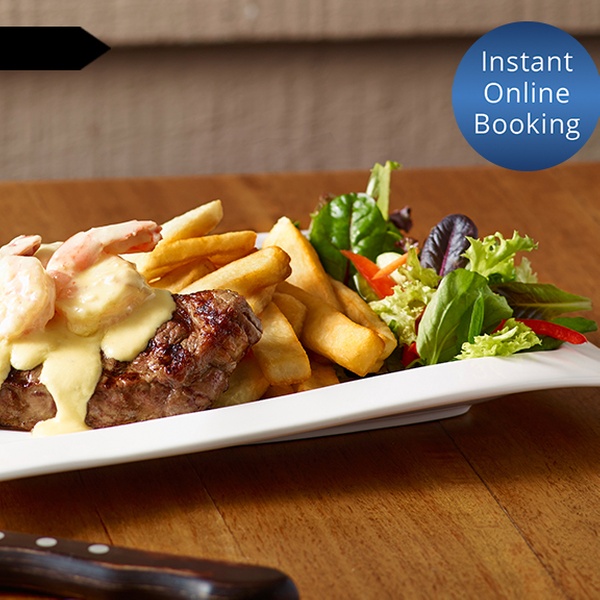 Satisfy hunger from an extensive menu, featuring ribs, seafood, salads, pasta and plenty of steak cuts like Angus porterhouse and eye fillet