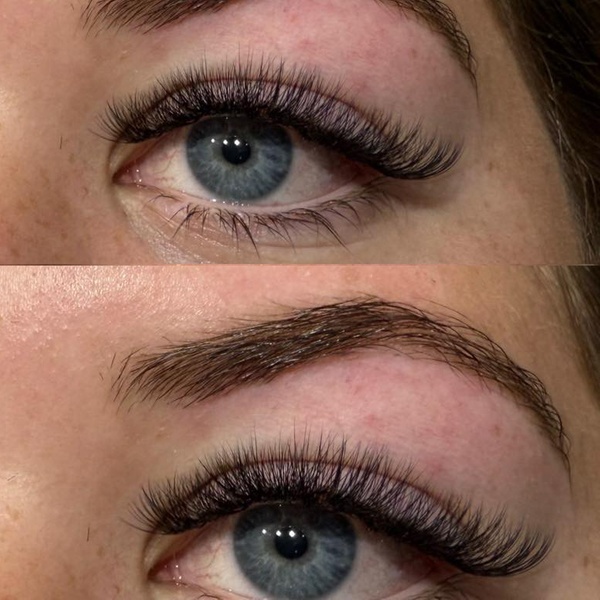 Brow Lamination: Get the ultimate fluffy brow trend! This service sets your eyebrows into a uniform, full, and defined shape that lasts. Achieve that sought-after sleek, brushed-up look and transform sparse or unruly brows.