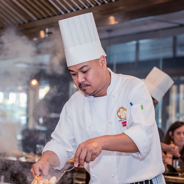 Upmarket restaurant showcasing traditional Japanese teppanyaki cooking techniques from Head Chef Yumi Maeyama