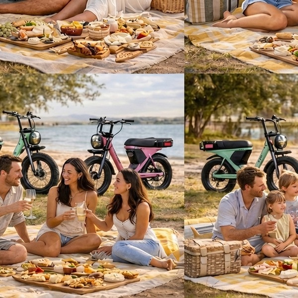 Premium E-Bike Picnic Package: Guests receive two hours of hire for two premium e-bikes, designed for effortless exploration of the Redcliffe Peninsula or Shorncliffe/Sandgate foreshore. The package also includes a locally supplied luxe grazing board, perfect for a leisurely stop. Each e-bike can comfortably seat up to two people, with child seats available upon request.