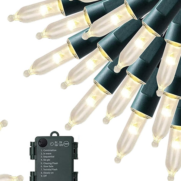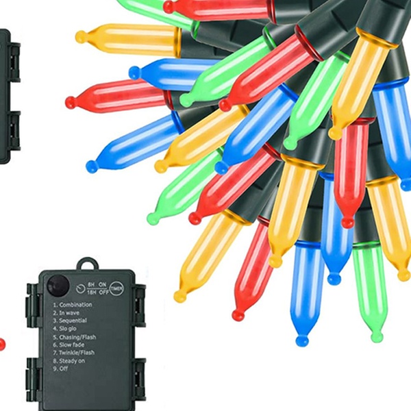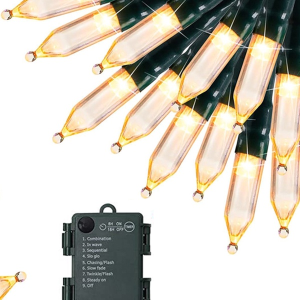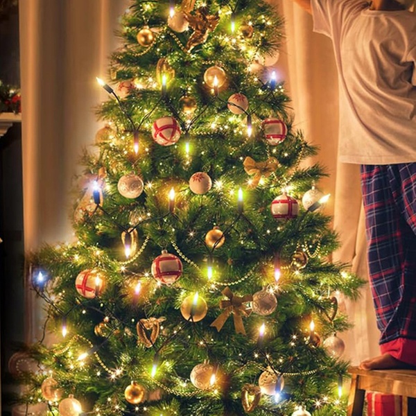 These Christmas tree light bulbs are battery-operated, water-resistant, and feature 8 lighting modes with a built-in timer, perfect for festive indoor and outdoor decorations.