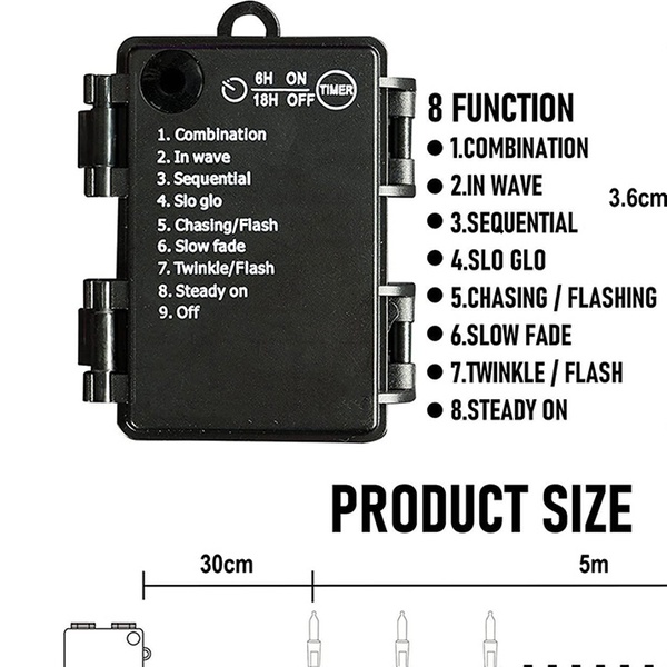 • Both the battery box and fairy light string are rated IP67 water-resistant, making them ideal for outdoor holiday and Christmas decorations.