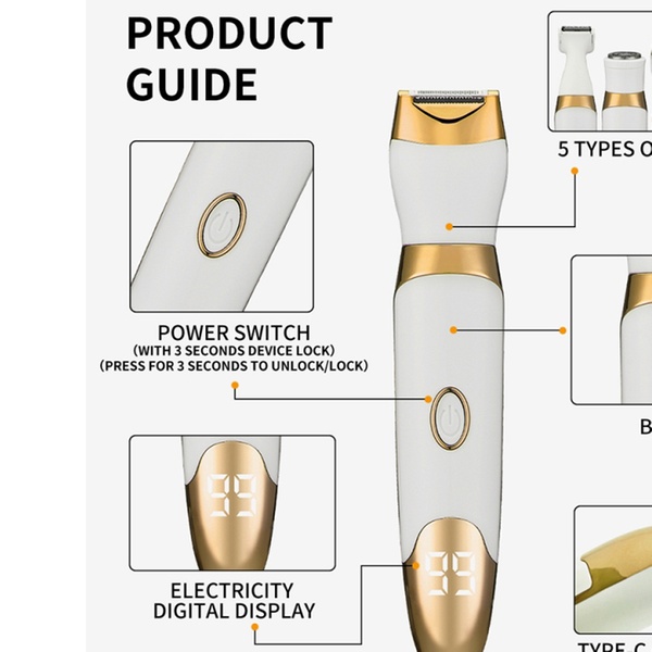 This 5-in-1 electric shaver for women features an LED display and multiple heads for smooth, precise grooming
