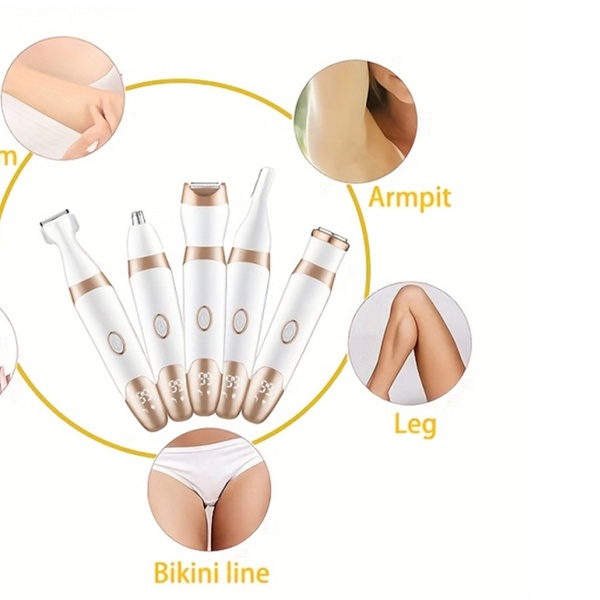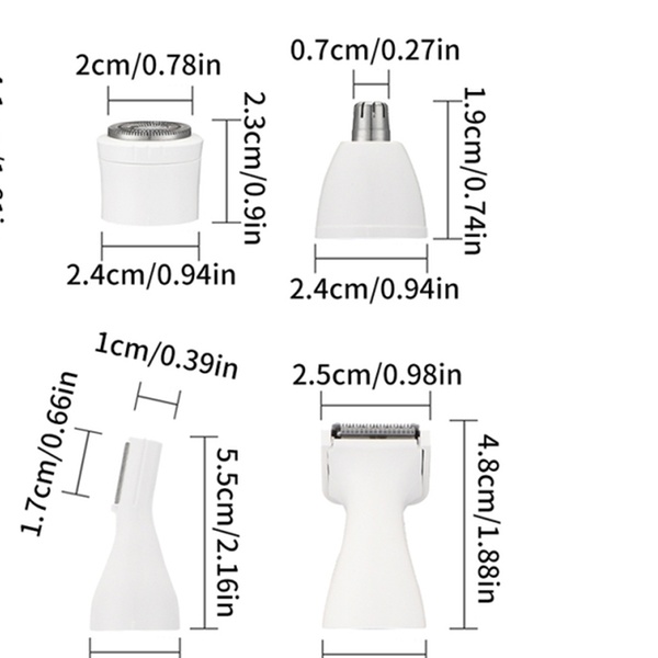 5-in-1 Multifunctional Heads: Includes five replaceable heads for large area hair removal, eyebrow trimming, nasal hair trimming, beard shaving, and sideburn shaping—designed to meet your grooming needs with precision and comfort.