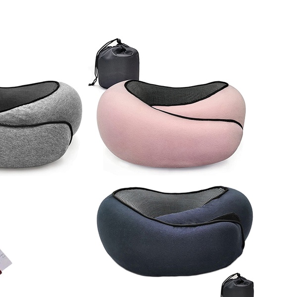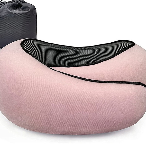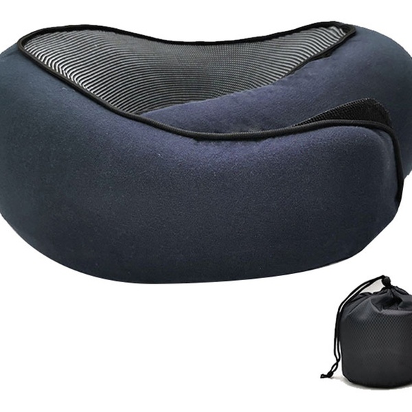 - Memory Foam Travel Pillow with Storage Bag - Available in Grey, Navy Blue, or Pink