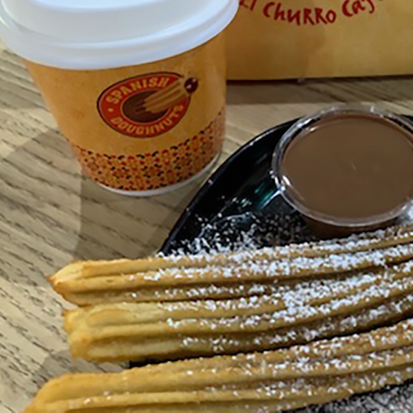 No sweet tooth can resist biting into a crunchy outside of golden churros, paired with milk chocolate sauce and some smooth coffee