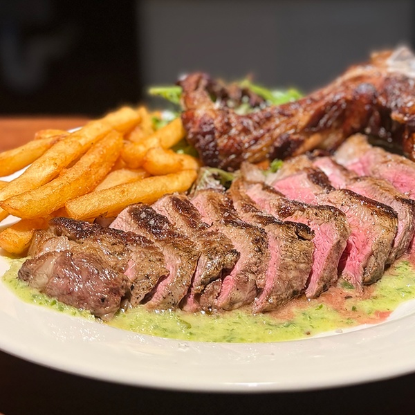 Enjoy the best steak experience paired with secret House Green Verde sauce in a vibrant setting!