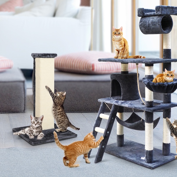 Keep the cats entertained with these gym scratching post; available in a choice of 13 designs