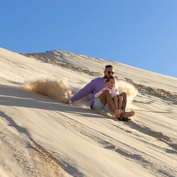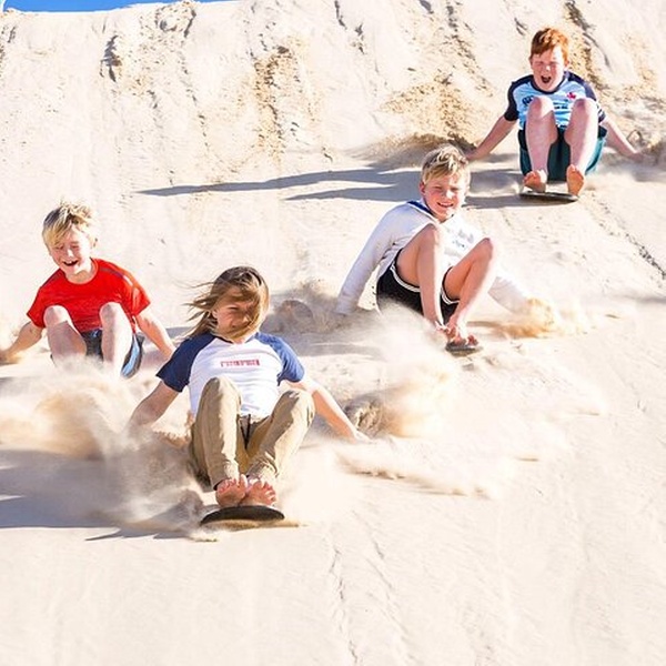 Our final stop is at the world-renowned Stockton sand dunes, a coastal desert that is 32km long and the largest mobile sand dune system in the southern hemisphere. Meet your friendly drivers from Port Stephens 4WD Tours, and board a 19-seater 4WD red bus for the 2km drive to “The Dunes”. Now it’s time for Adventure as you sand board down the huge sand dunes that make up this idyllic setting.