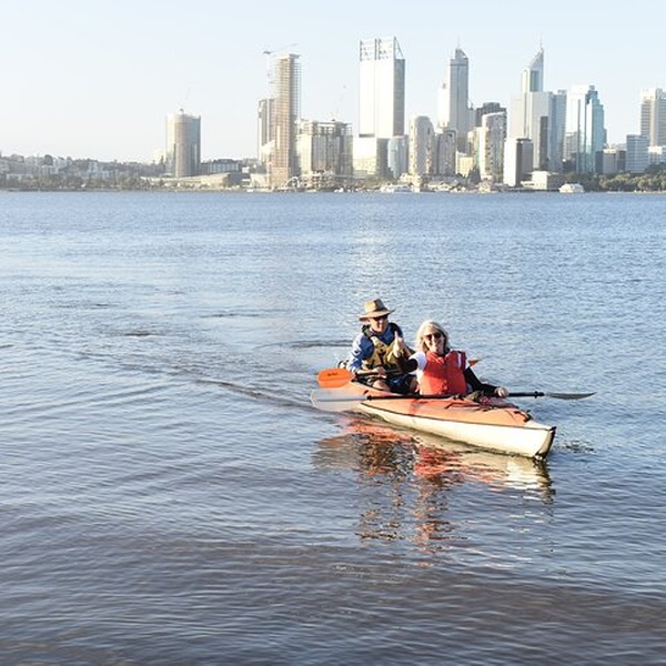 Let us take you outdoors on a relaxing and fun kayak tour along a picturesque and charming section of the Swan River in South Perth. We start and finish our paddle next to the Coode Street Jetty. At the completion of the kayaking we reward your effort with a glass of wine or a soft drink and some snacks and nibbles. This all inclusive and pre organised ‘picnic’ allows you to unwind and take in the awesome views across the river to the city skyline. Come on this fun, upbeat and engaging tour and let our passionate and experienced guides share some of the areas historical, cultural, geographical and horticultural secrets with you. Our small group guided tours are all about actively connecting you with nature rather than strenuous exercise and so cater for a wide range of ages and skill levels. We aim to leave you energised, relaxed and with a strong sense of accomplishment.