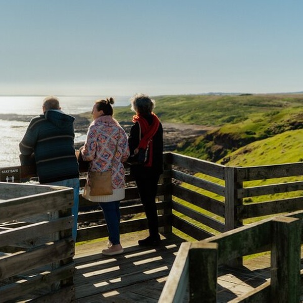 Follow boardwalks to cliff-edge lookouts; feel the Bass Strait swell and watch blowholes with views toward Seal Rocks.