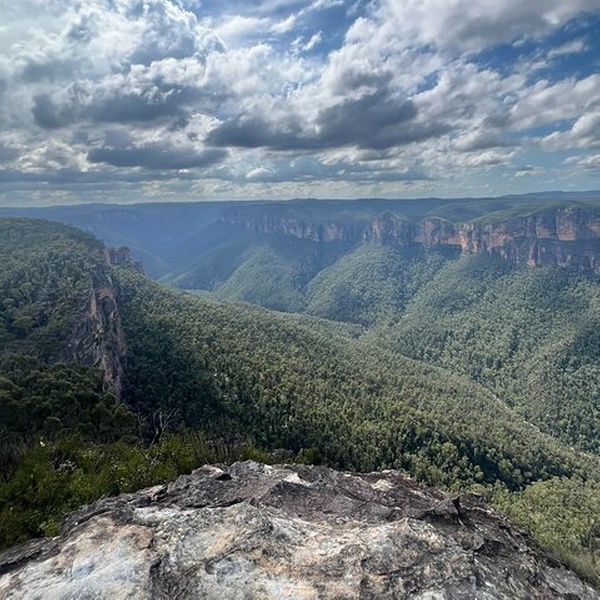 Experience the breathtaking view from Govetts Leap and discover why it is renowned as one of Australia's most iconic lookouts. To the east, the magnificent Bridal Veil Falls cascade 180 meters to the base of the cliff. The sight of the water’s graceful descent is truly mesmerizing, while the expansive vistas across the valley to the Grose Wilderness are equally captivating.