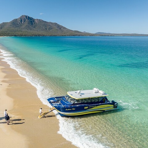 Enjoy a 30 minute cruise along the striking granite coastline of Great Oyster Bay, while our local guides share stories about the area's history and wildlife. Upon landing at Hazards Beach, it is a gentle 2 kilometre bushwalk along the Isthmus Track to Wineglass Bay. Keep a lookout for friendly echidnas and wallabies as you make your way to the soft white sands and crystal clear waters of Wineglass Bay where you can spend time relaxing before walking back to Hazards Beach where you will meet the Freycinet Aqua Express to take you back to Coles Bay. A Parks Pass is required to access Freycinet National park.