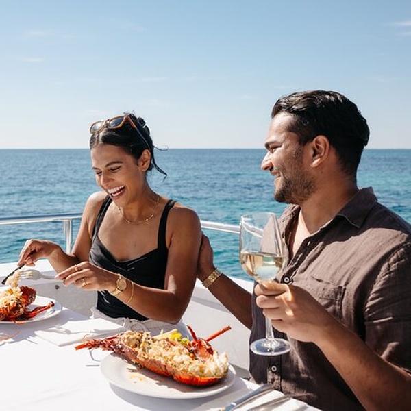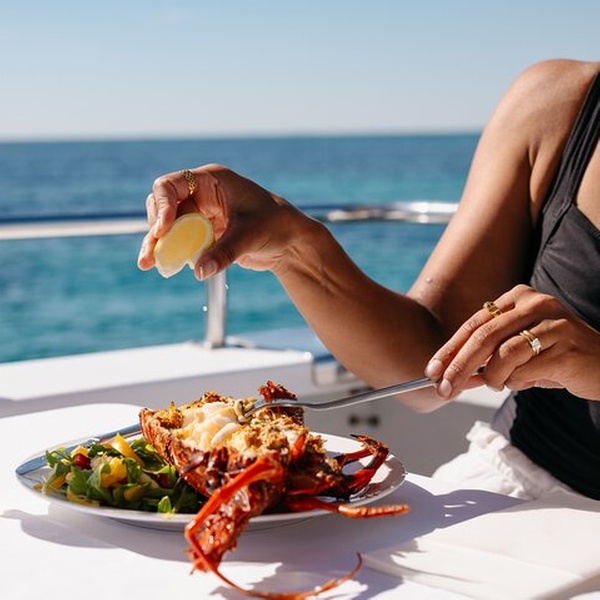 A unique & indulgent journey of the senses with Rottnest Cruises Luxe Island Seafood Cruise. This is a deluxe dining experience at Rottnest showcasing authentic Western Australian flavours, with a menu designed by executive chef Tony Howell. On a 69-ft pleasure boat, cruise turquoise waters as you feast on a 7-course degustation menu of fresh local ingredients & seafood, cooked by your private chef, led by experienced crew. Sip on a welcome cocktail, enjoy premium still and sparkling Margaret River wines by Howard Park, plus local and international beers and non-alcoholic beverages, all served complimentary as you cruise. While anchored in a calm Island bay, you can swim or relax on float mats, or enjoy the scenery from one of 3 decks. NOTE Guests must be able to manage an angled boarding ramp with handrails, ladder style stair case with handrails to access the upper deck, and narrow walkway to the bow. As we go into open ocean, guests must be able to stay upright on moving water.