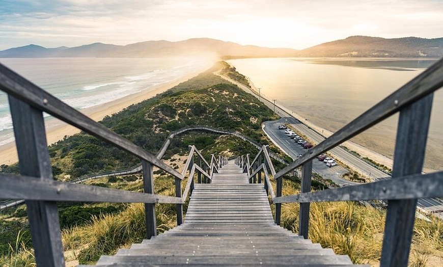 Climb the wooden steps to one of Tasmania’s most photographed viewpoints. Enjoy breathtaking 360-degree views where North and South Bruny Island meet, with sweeping ocean vistas and abundant wildlife.