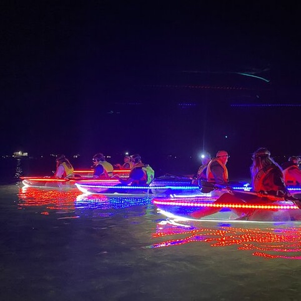 Paddle through the serene waters of Lake Macquarie on a captivating night kayak tour from Naru Beach. Ideal for novices and seasoned paddlers alike, this 2-hour adventure features clear double kayaks illuminated from below, offering a unique glimpse of the nocturnal marine life beneath the surface. Guided by experienced local instructors, learn about the ecosystem and local history while enjoying a tranquil paddling experience with a maximum of 12 guests. Perfect for families, this tour promises an unforgettable evening adventure under the stars.