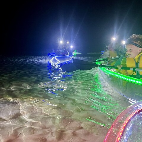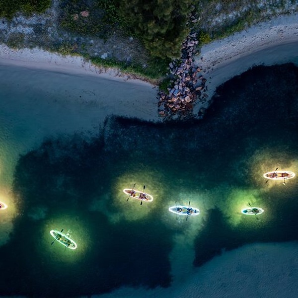 You’ll watch the sea life in Lake Macquarie come alive as you illuminate the water below with your clear kayak’s lights.
