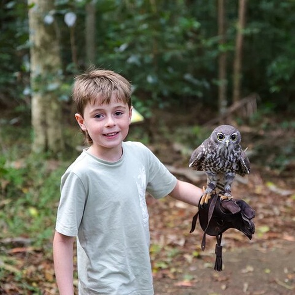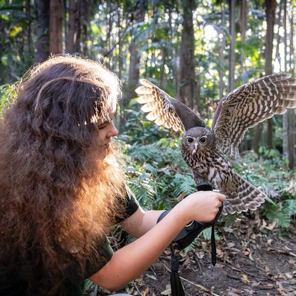 THIS IS AN EXCLUSIVE EXPERIENCE FOR YOUR FAMILY OR GUESTS. BOOKINGS REQUIRE A MINIMUM OF 2 SPOTS AND CAN ACCOMMODATE UP TO 4 PEOPLE. WE CAN HOST 1 PERSON, BUT THE MINIMUM CHARGE OF 2 PEOPLE WILL STILL APPLY, WITH THE DIFFERENCE PAYABLE ON THE DAY. REACH OUT TO US IF YOU HAVE ANY QUESTIONS. The Forest Flight Buderim Owl Encounter is a one-of-a-kind adventure! More than just a guided walk through a Sunshine Coast forest, it’s an opportunity to connect with wildlife like you've never before. Fly a majestic Barking Owl & Eastern Barn Owl, learn about the fascinating world of Australian owls, and explore the history and stunning landscapes of Buderim in one of its beautiful environmental parks. With expert guidance, hands-on interaction, and breathtaking moments with our charming owl ambassadors, this experience is perfect for anyone seeking adventure, education, and unforgettable memories.