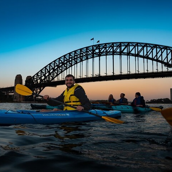 Upon arrival and throughout our departure, you will experience unparalleled views of the Harbour Bridge, beautifully illuminated during Vivid, all from the unique perspective of a kayak