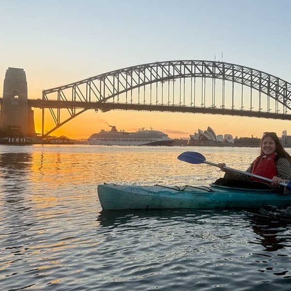 Start your day on Sydney Harbour with a peaceful, couple-focused sunrise kayak in a small group. Launch from sheltered Lavender Bay (no ferry-lane crossings), get quick beginner-friendly coaching, then paddle to unbeatable water-level views of the Harbour Bridge and Opera House in golden morning light. We stop at the best photo angles, keep the pace relaxed, and handle all the gear so you can simply enjoy the views, the calm water, and the “wow” moment of Sydney waking up around you.