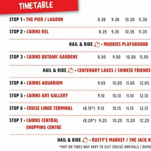 Discover Cairns with ease on Cairns Hop on Hop Off Bus! With 8 convenient stops at some of the city's most iconic attractions, including the Esplanade, Cairns Aquarium, Botanic Gardens and more, it's the perfect way to explore at your own pace. Whether you're soaking up the tropical vibes, diving into local culture, or enjoying stunning views, our flexible service makes getting around Cairns simple, fun and hassle-free. Hop on, Hop off, and make the most of your Cairns adventure! This is great for all ages. We are also wheelchair and pushchair accessible. This product is only for Hop on Hop off Customers. We have a Maximum of 80.