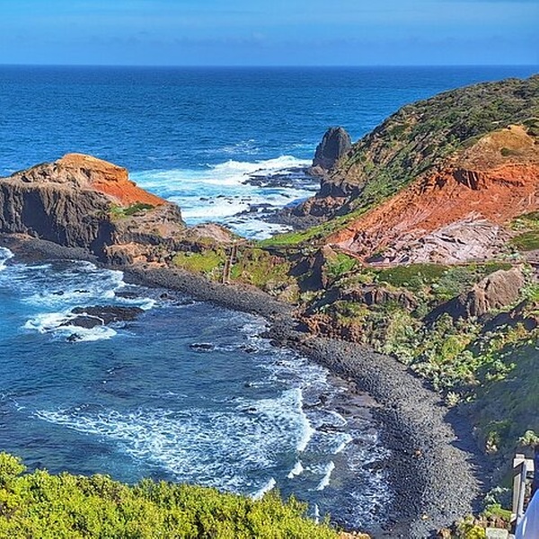 View the spectacular Portsea back beach from the cliff tops. A beautiful backdrop for photos, with views across the pounding surf, dangerous rips, and dozens of reefs. This is the coastline where Australian prime minister, Harold Holt, disappeared in 1967.