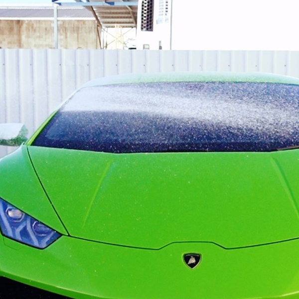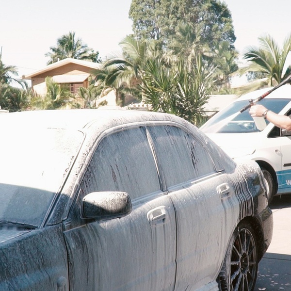 - Snow foam is sprayed onto the car before washing to break down dirt and grime